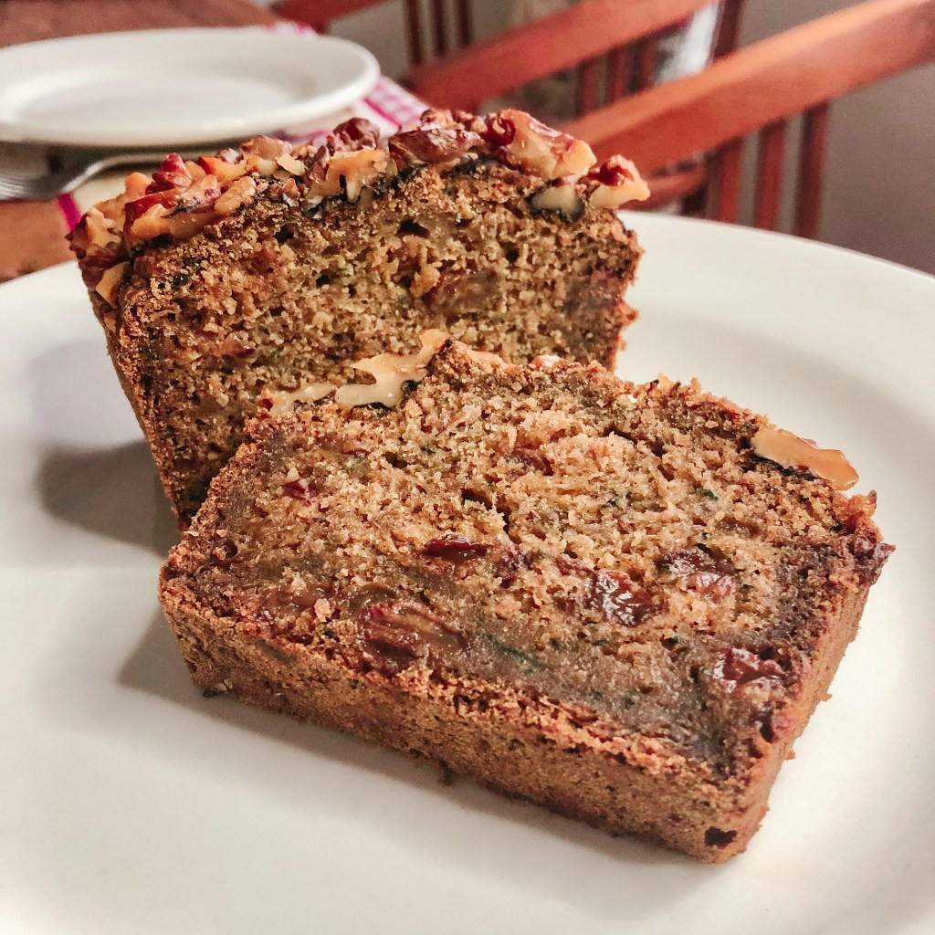 Happy New Year! We hope that everyone had a good start to 2021. New year, a new zucchini-based recipe! In baking, zucchini is a complimentary add-in, for instance, for brownies or quick bread. It gives the final product a lovely moist texture that makes your taste buds sing. This time around, we made spiced zucchini bread laden with raisins and topped with chopped walnuts. The spices give the bread a wintery-touch, while the zucchini gives it a veggie boost. We believe that this bread is ideal for the winter season. Smiles guaranteed!